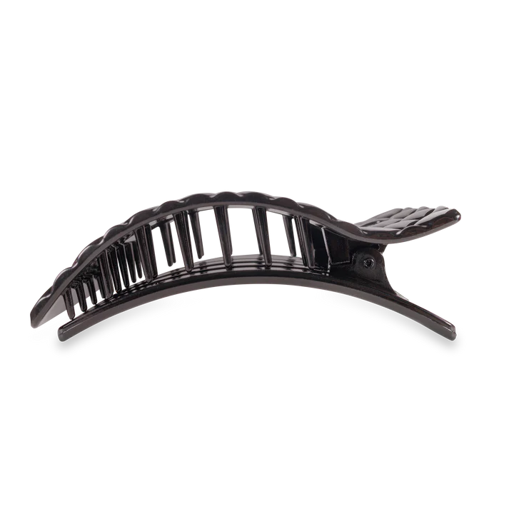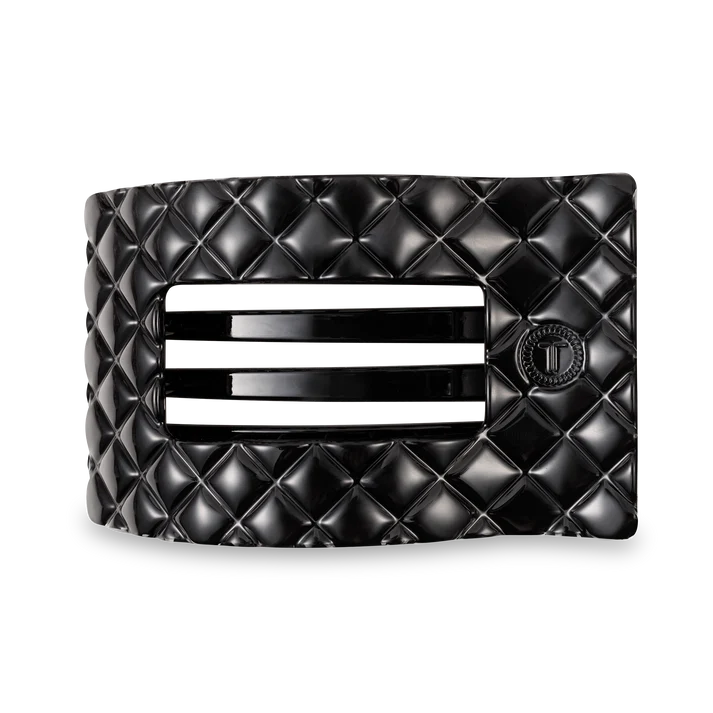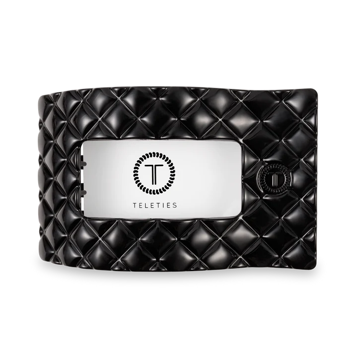 Lean back and relax - comfort just got a new shape. Introducing the TELETIES Jet Black Quilted Large Flat Rectangle Hair Clip, the newest addition to our best-selling Flat Clip Collection. Joining the original Round and Square styles, this elevated rectangular design offers the same flat-back comfort and stronghold TELETIES is known for - now with a sleek, modern style.