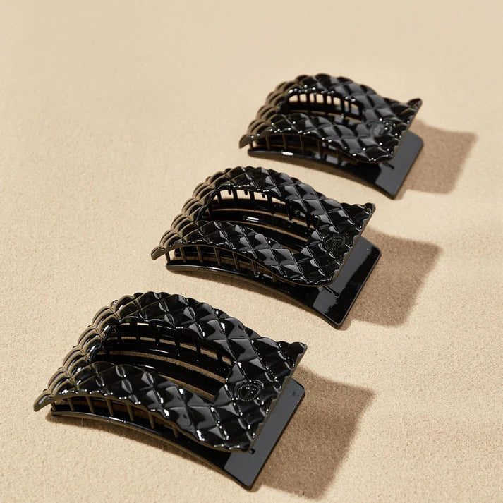 Lean back and relax - comfort just got a new shape. Introducing the TELETIES Jet Black Quilted Small Flat Rectangle Hair Clip, the newest addition to our best-selling Flat Clip Collection. Joining the original Round and Square styles, this elevated rectangular design offers the same flat-back comfort and stronghold TELETIES is known for - now with a sleek, modern style.
