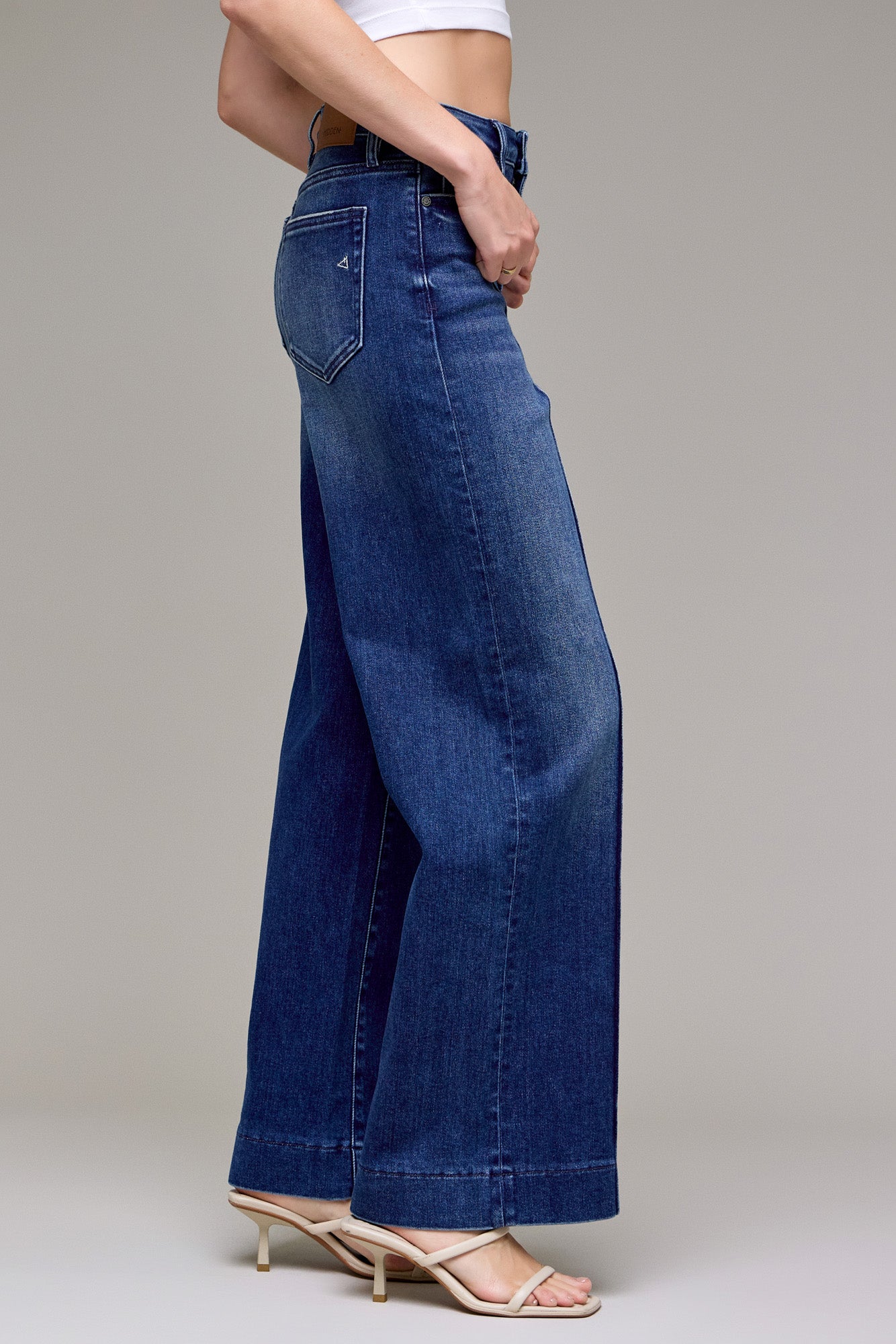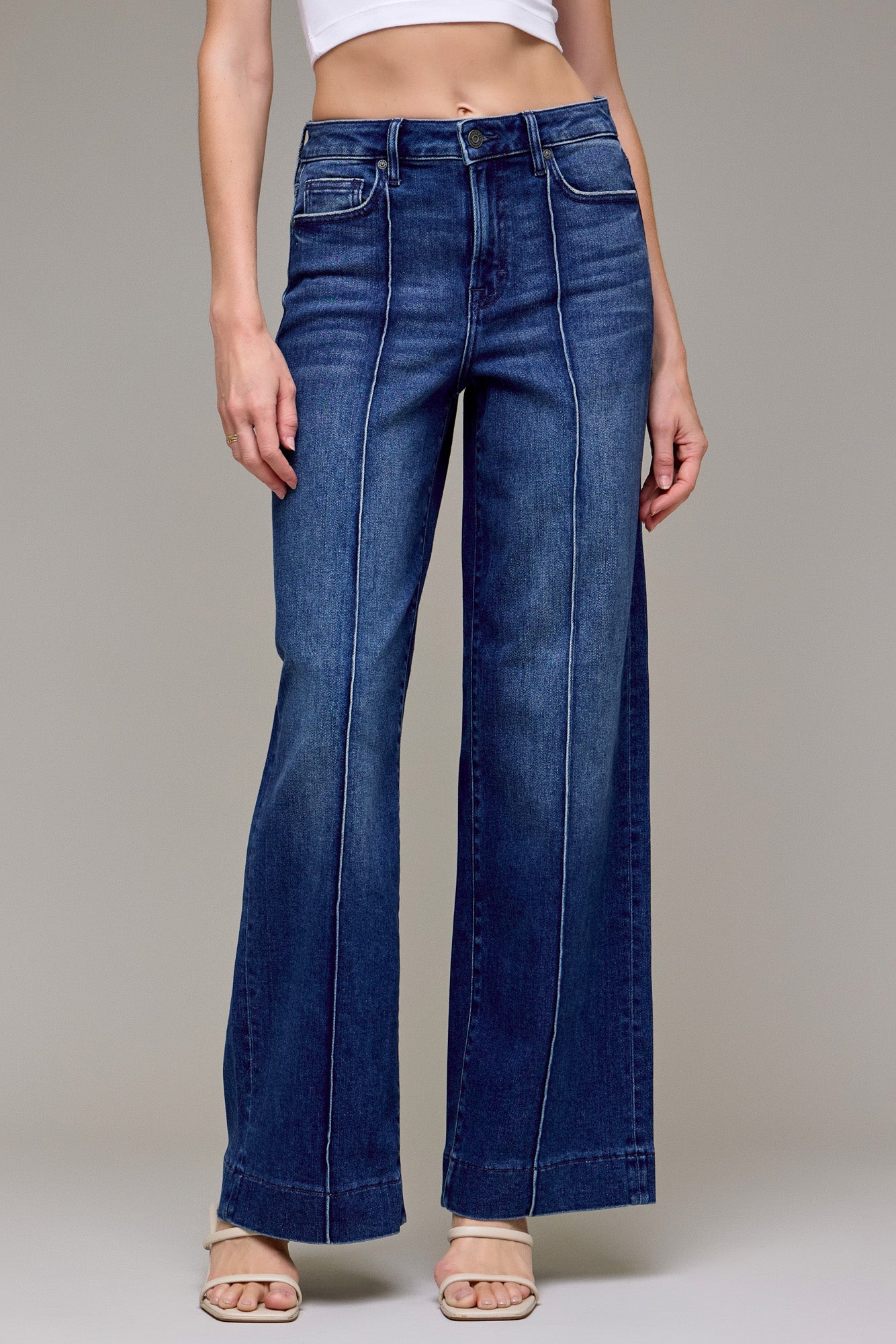 Dark Wash Pintuck High Rise Wide Leg Jeans by Hidden – Grace & Grit Boutique