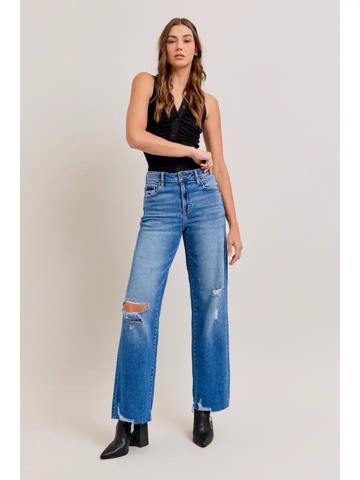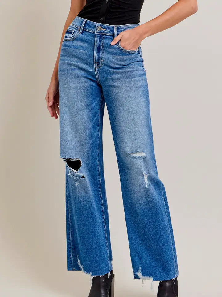 Step into comfort and cool vibes with these Hidden Jeans Medium Dark Distressed Stretch Dad Jeans. Made from a stretchy blend of 93% cotton, 5% polyester, and 2% spandex, they offer just the right amount of give. With an 11-inch rise and a 32-inch inseam, these medium dark jeans bring classic dad style with a playful distressed twist. Perfect for easygoing days when you want to look effortlessly stylish!