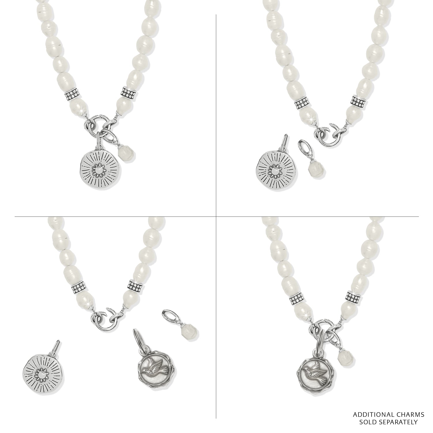 This necklace invites you to get creative. Its freshwater rice pearl gemstone charm and sentiment-etched token can be removed or reversed for great versatility. Back inscription reads, a beautiful life is not a place at which you arrive, but the experience you create.