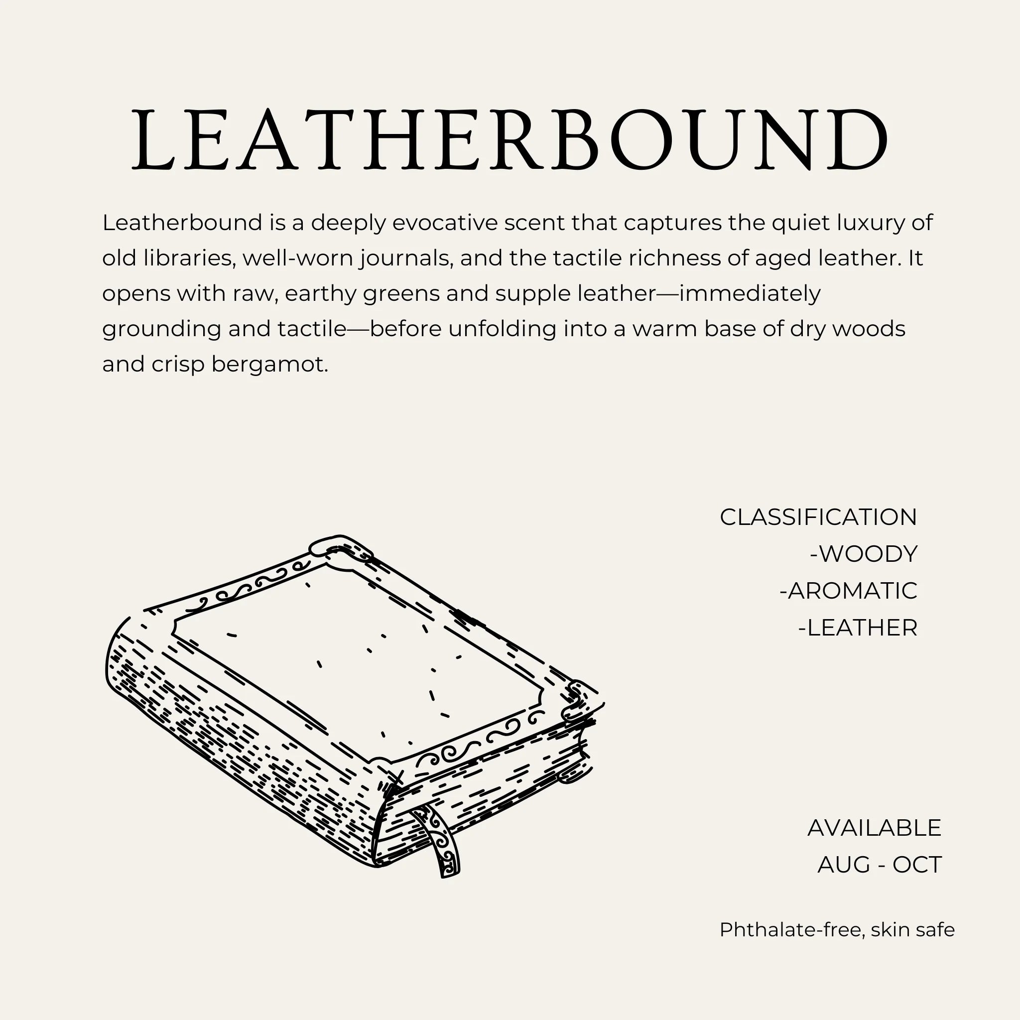 Bring the essence of a classic study into your home with Leatherbound—a bold blend of earthy greens and rich leather, grounded by warm wood and a touch of bright bergamot. This fine mist refreshes air, upholstery, and fabrics with a clean, sophisticated scent that lingers without overpowering.