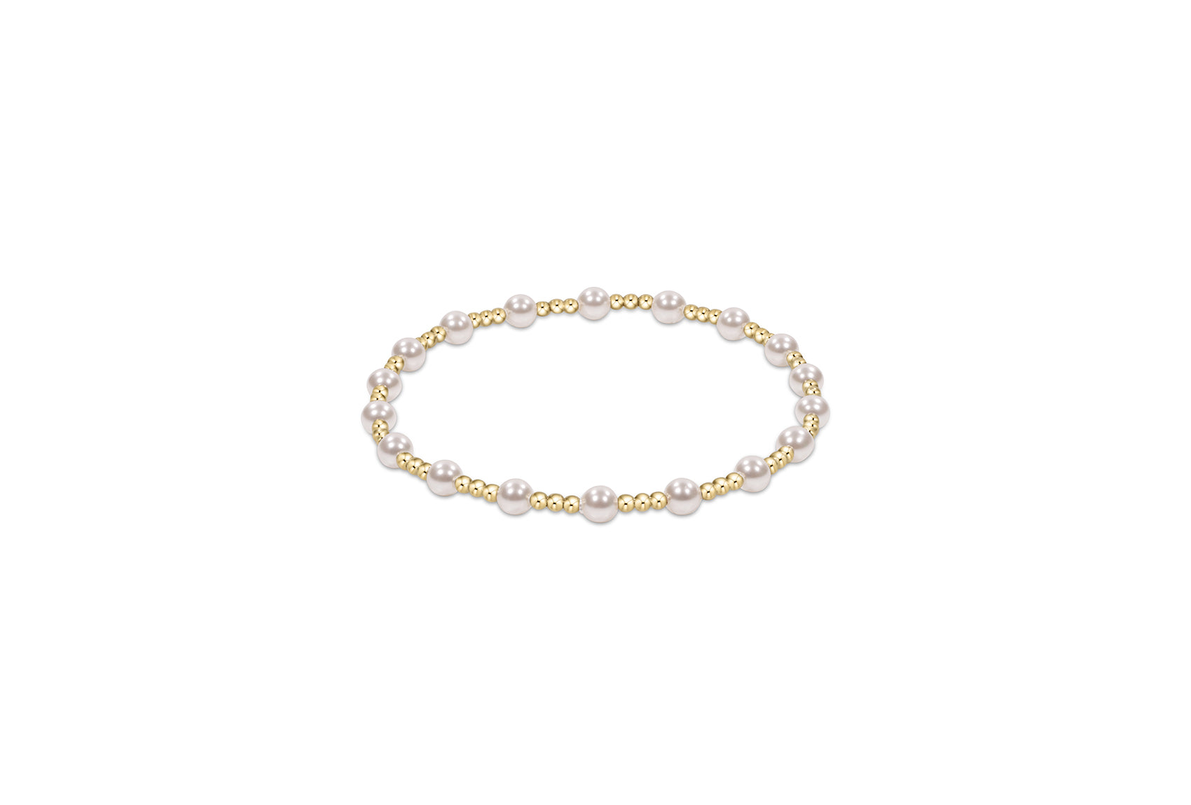 Brighten your day with the enewton Classic Sincerity Pattern bracelet! This playful piece features shimmering 4mm crystal pearls paired with tiny 2mm 14kt gold-filled beads, creating a charming mix of sizes. Hand-beaded on stretchy elastic, it slips on easily and stays comfortable through sleep, showers, and sweat. Measuring 6.25", it’s perfect for stacking or wearing solo to add a touch of sparkle to any outfit.