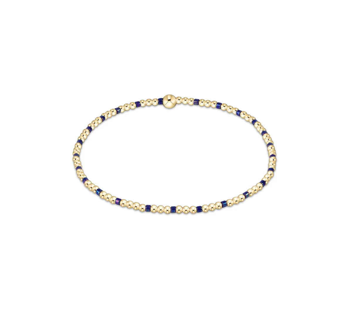 The enewton Hope Sincerity Pattern 2mm Bead Bracelet - Blue Metallic Bracelet is made with gold-filled 5mm beads and 2mm seed beads.
