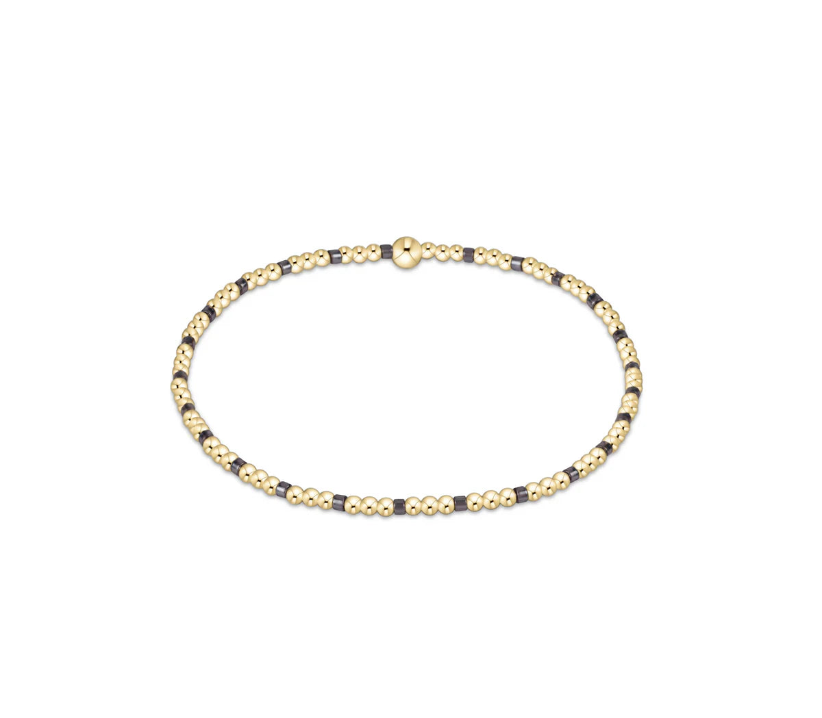 The enewton Hope Sincerity Pattern 2mm Bead Bracelet - Taupe With A Twist Bracelet is made with gold-filled 5mm beads and 2mm seed beads