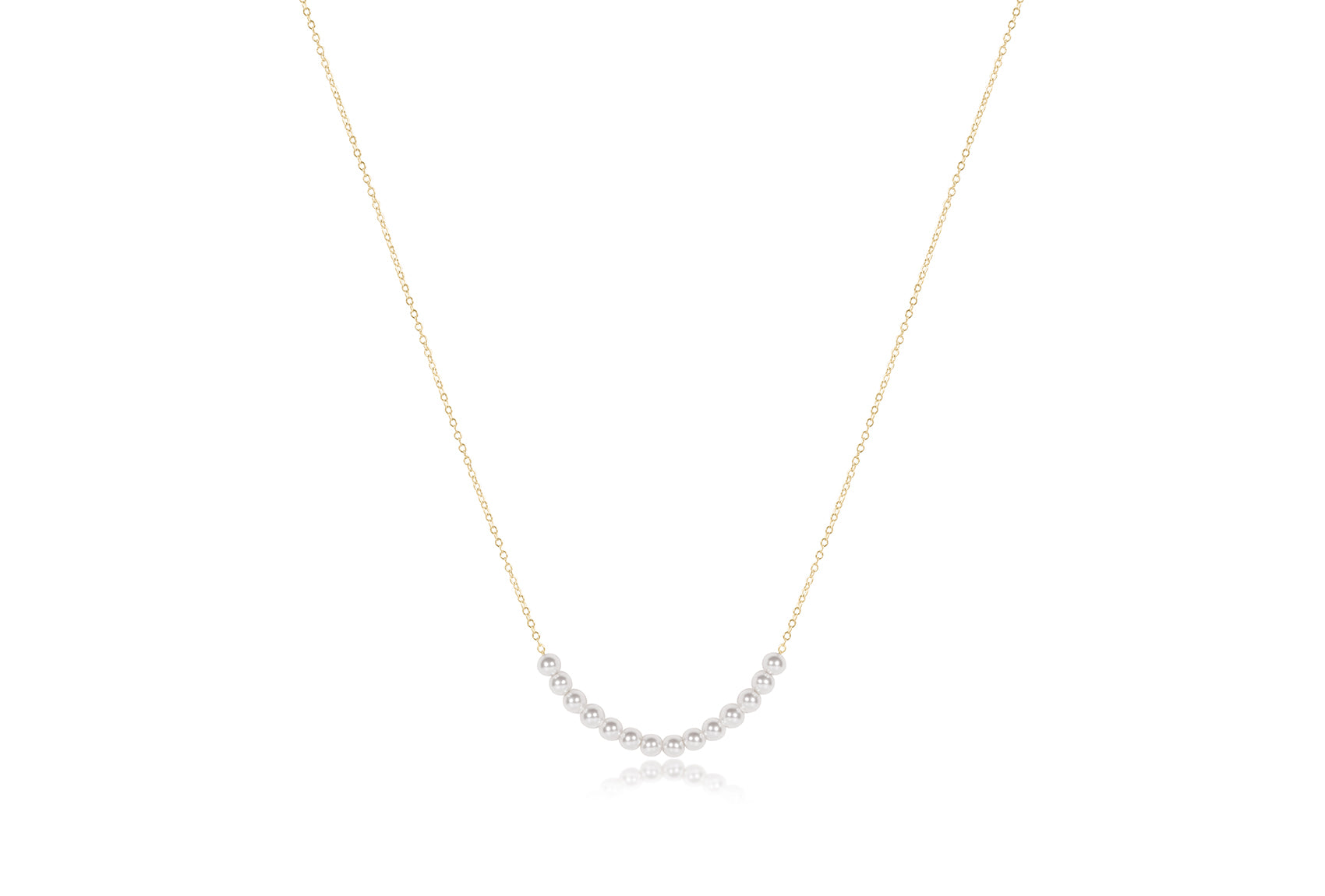Add a touch of timeless charm to any look with this playful 16" necklace featuring 4mm pearls on a 14kt gold-filled chain. Its classic elegance pairs effortlessly with all your favorite necklaces, perfect for layering day or night. Designed for worry-free wear, you can sleep, shower, or sweat in it without a second thought—because sparkle should keep up with your life!