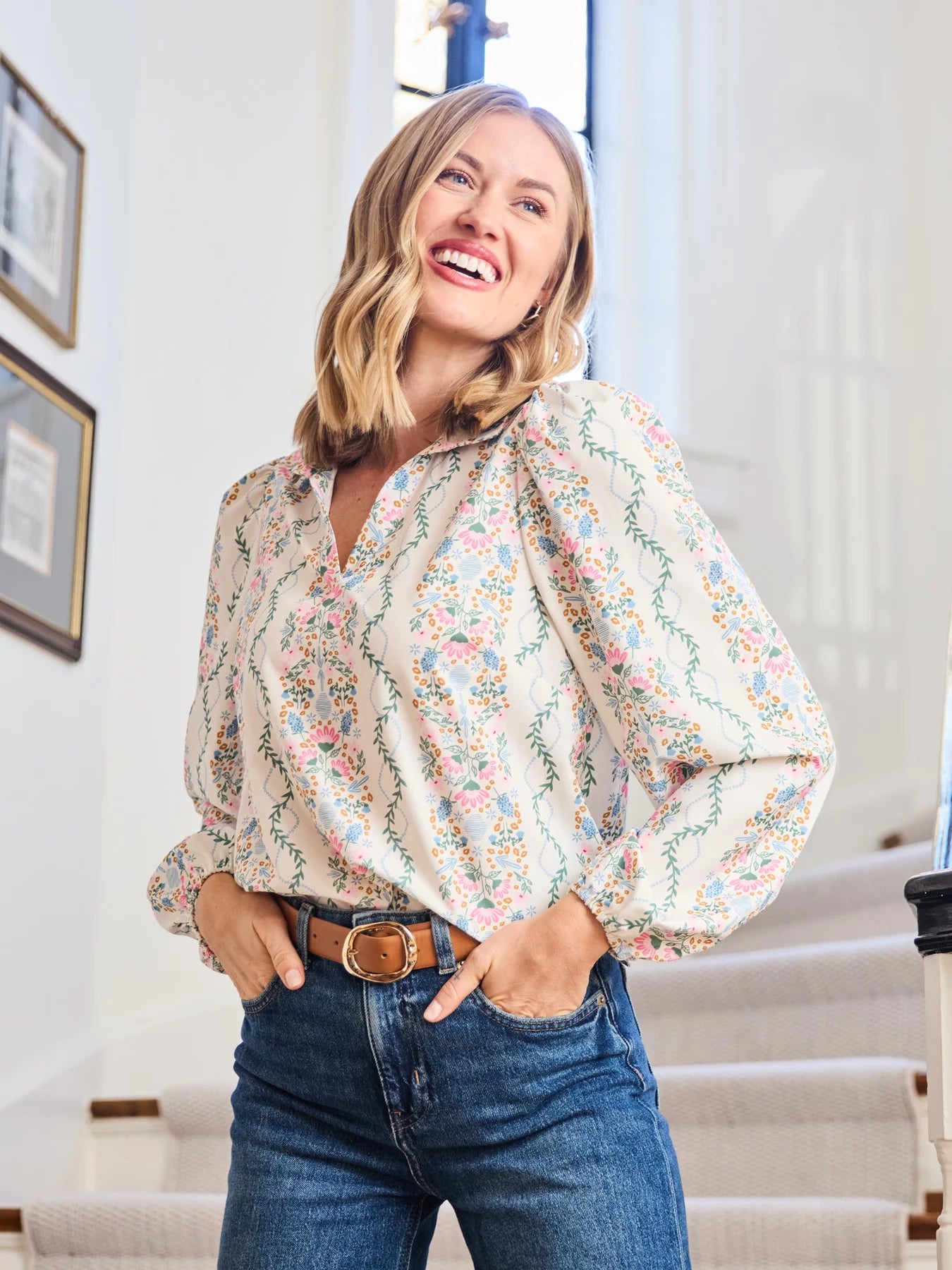 The Ivy Lane Long Sleeve Top blends chic style with a playful vibe. Its long sleeves with elastic cuffs offer a snug, flattering fit, while the high split neckline adds a dash of flair. Perfect for pairing with your favorite jeans or dressing up for a fun night out, this top brings effortless elegance with a twist of charm to any outfit.