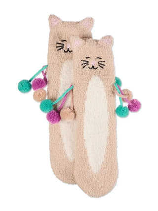 Cat Embellished Plush Crew Socks is a pair of non-skid plush socks