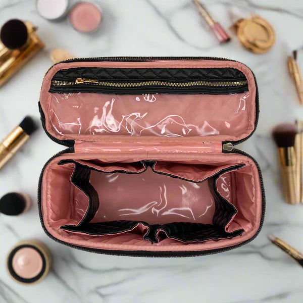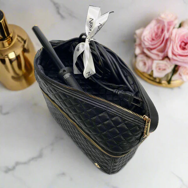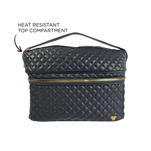 PurseN Stylist Travel Bag - Timeless Quilted - The Timeless Quilted Stylist Bag is designed for hot styling tools and keeping them separate from your other beauty products. The top compartment features a heat resistant liner so you don’t have to wait to put away your hot tools. The bottom compartment is ideal for larger and heavier items such as bottles, jars, hairbrushes and more. The two combine to make the ultimate toiletry case.