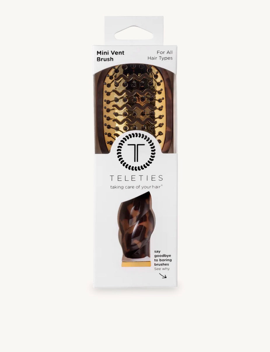The Mini Vented Hair Brush in Tortoise is designed for fast, easy styling on-the-go. Its vented design supports airflow and even heat distribution, making it a great option for short hair and travel styling when using heat tools, like a mini hair dryer brush for travel.