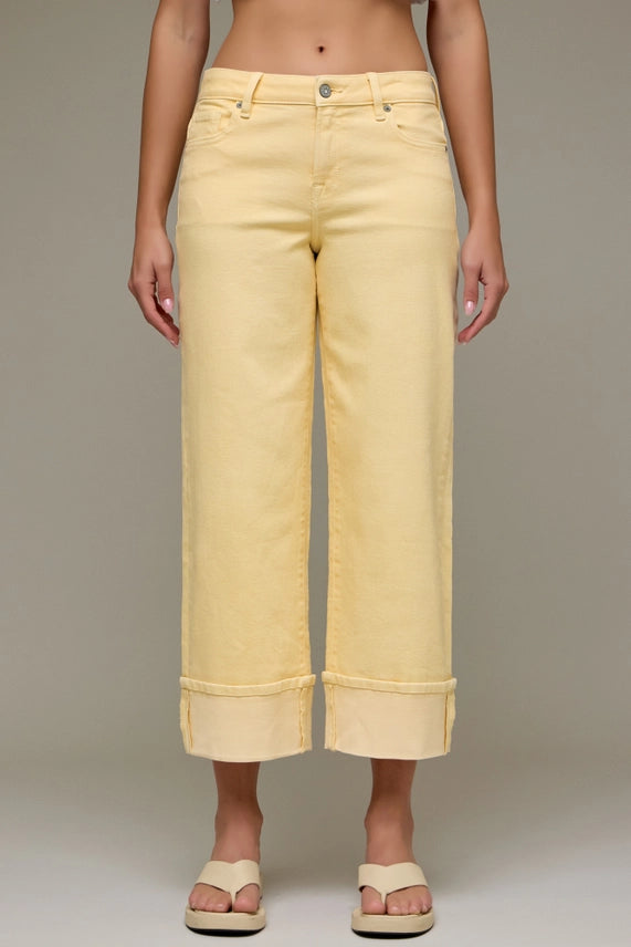Vanilla Cuffed Mid Rise Petite Dad Jean by Hidden Jeans Dad jeans are having their moment, and this vanilla pair from Hidden Jeans proves why. The mid-rise cut hits just right, while the cuffed hem adds a touch of intentional cool. These jeans offer a flattering fit without the endless hemming. Soft, durable denim that works as hard as you do—whether you're running errands or making a statement. Throw them on with anything and feel effortlessly put-together.