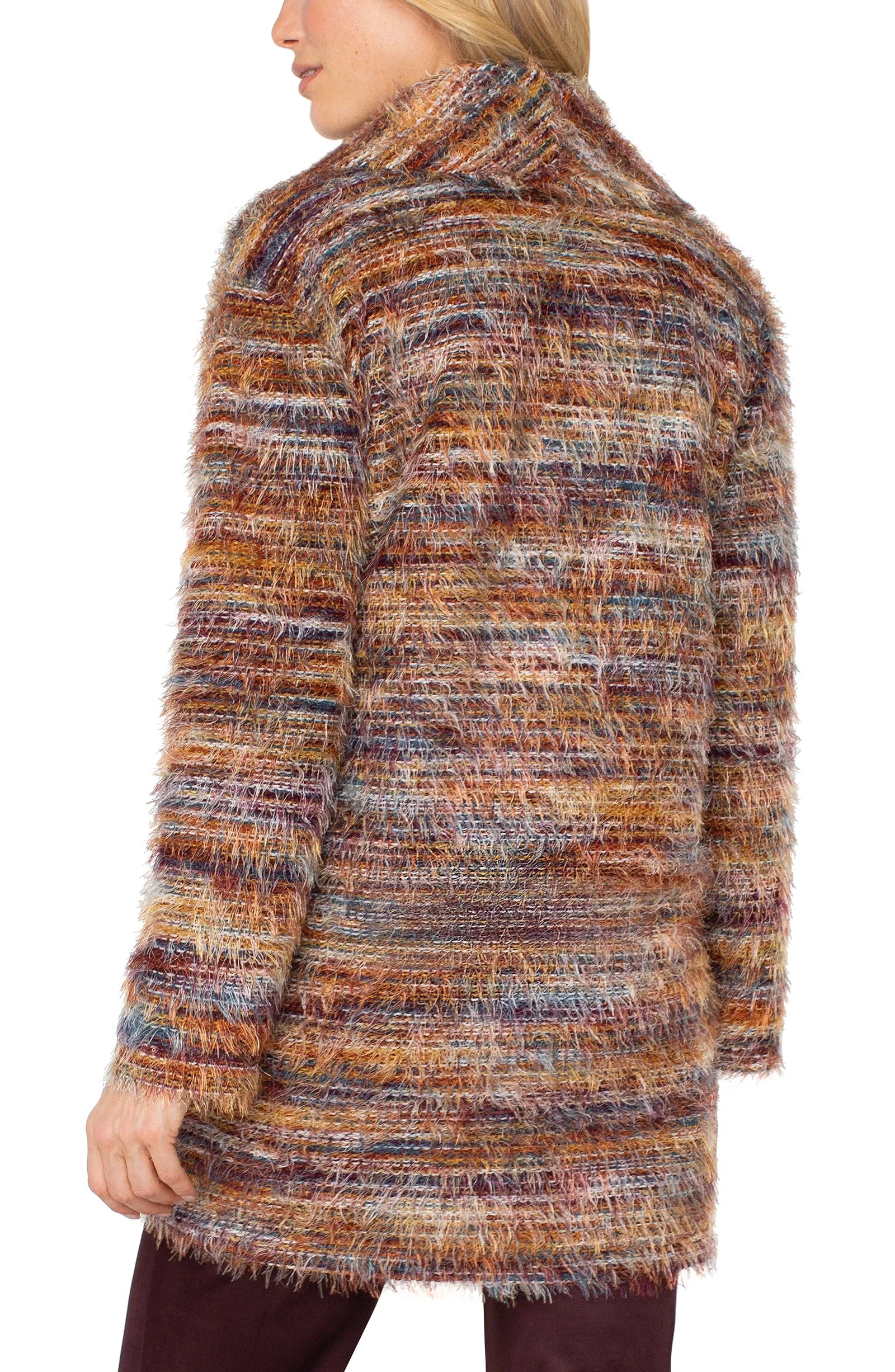 Open Front Coatigan Sweater by Liverpool - Throw on this modern hybrid and you'll wonder how you ever lived without it. The textured feather knit in rich multi tones brings visual interest to every outfit, while the soft shawl collar wraps you in comfort. Best part? Hidden pockets tucked in for all your essentials—because style shouldn't mean sacrificing practicality. It's the perfect cozy-meets-refined piece that transitions seamlessly from casual coffee runs to put-together evenings. Reach for it again and again.