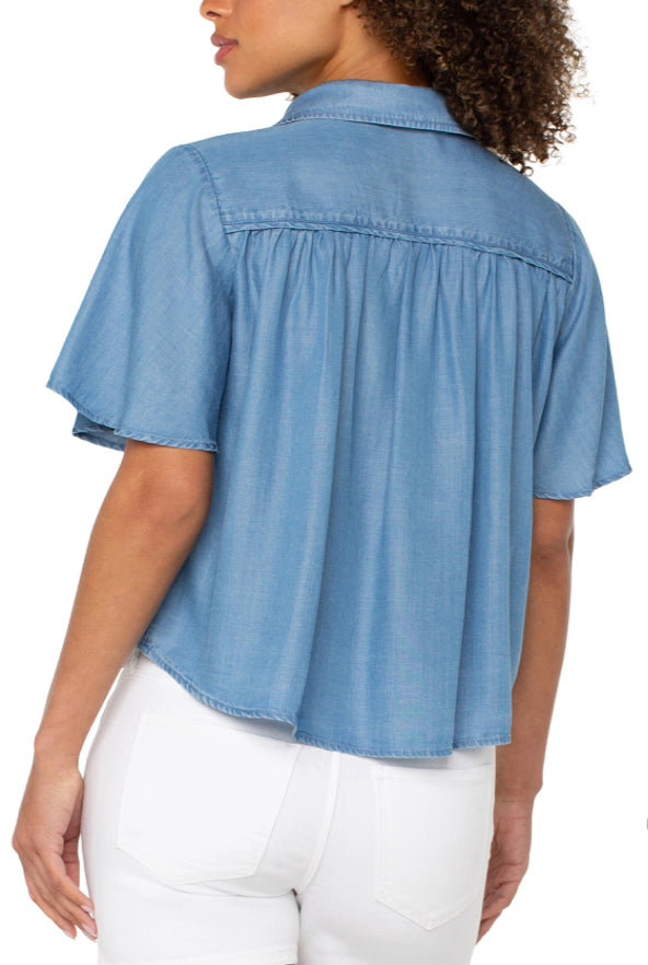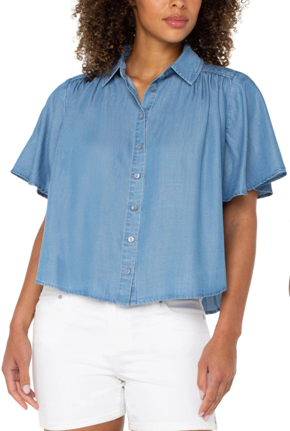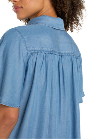 Expertly crafted from lightweight woven fabric, the Liverpool 1/2 Sleeve Shirred Button Up Top offers a breezy, graceful drape that keeps you comfy all day. Its playful shirring details and relaxed fit make moving around a breeze, while the half sleeves add just the right touch of charm. Perfect for effortless style with a wink of fun!