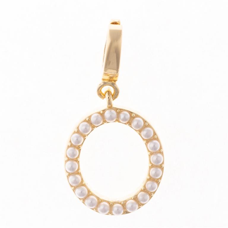Add a personalized touch to your necklace with Avery Alphabet Necklace Charms. Each charm features a gold and pearl letter and a clasp attachment for easy customization options. Perfect for adding, removing, or moving on your necklace.