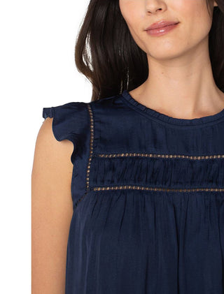 This playful top features a textured sateen fabric that adds subtle shine and dimension. The crew neckline and flutter sleeves create a fun, flirty silhouette, while the trim detail adds a touch of charm. With a straight hemline and convenient back closure, it’s easy to wear and perfect for adding a lively twist to your everyday look. At approximately 25.25" long, it pairs effortlessly with your favorite jeans or skirts.