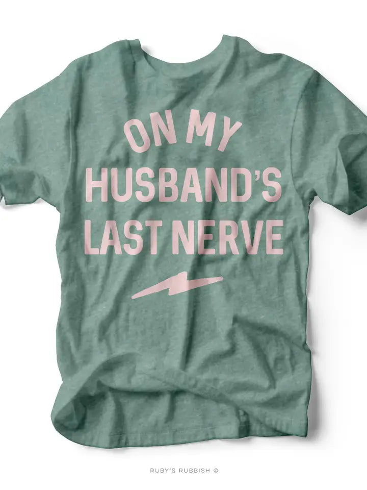 This "On My Husband's Last Nerve" T-shirt feels like a fluffy cloud wrapped in fields of cotton, crafted from a pre-shrunk poly/cotton blend for lasting comfort. With butter-smooth threads and a vintage-soft touch, it’s the perfect playful way to show off your cheeky side while staying cozy all day long.
